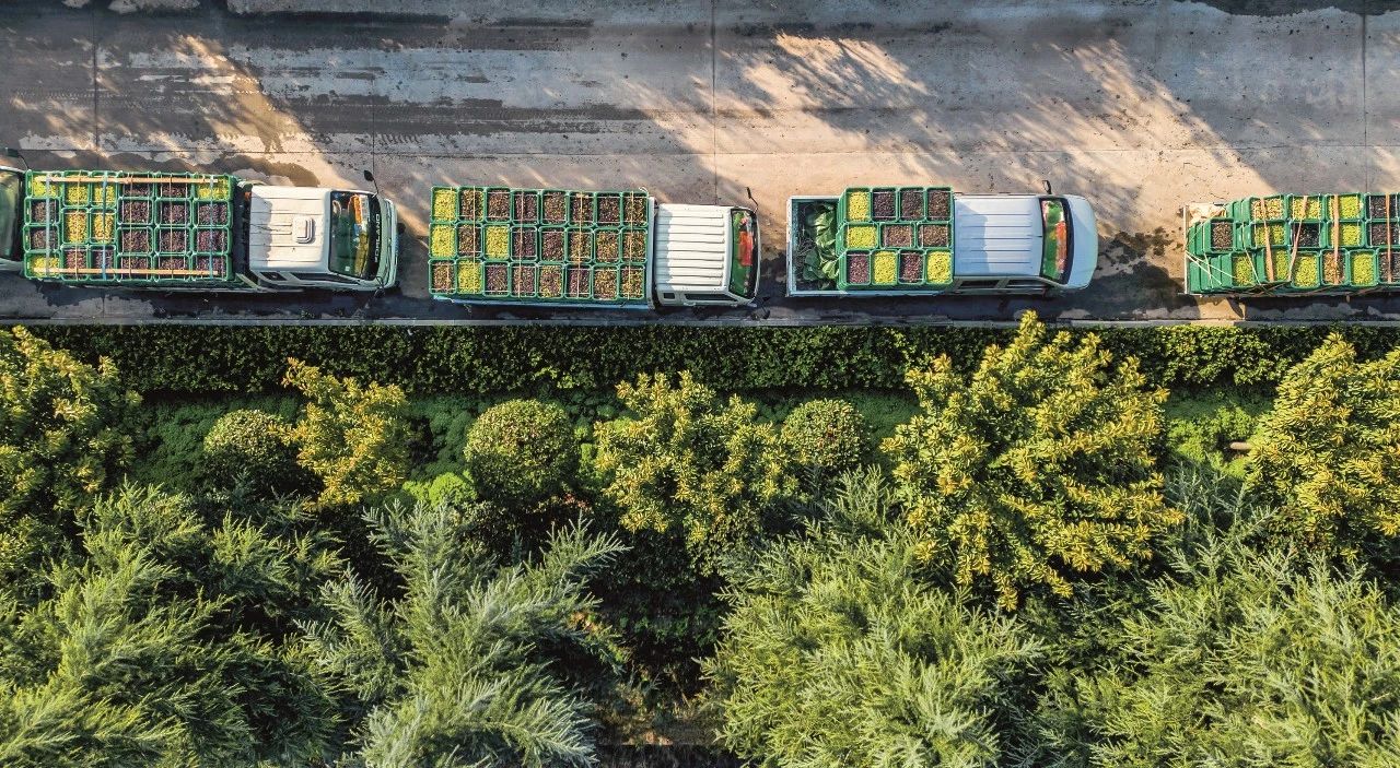 甘肅省隴南市各村油橄欖種植專業(yè)合作社的車隊(duì)滿載油橄欖,有序送往祥宇公司。