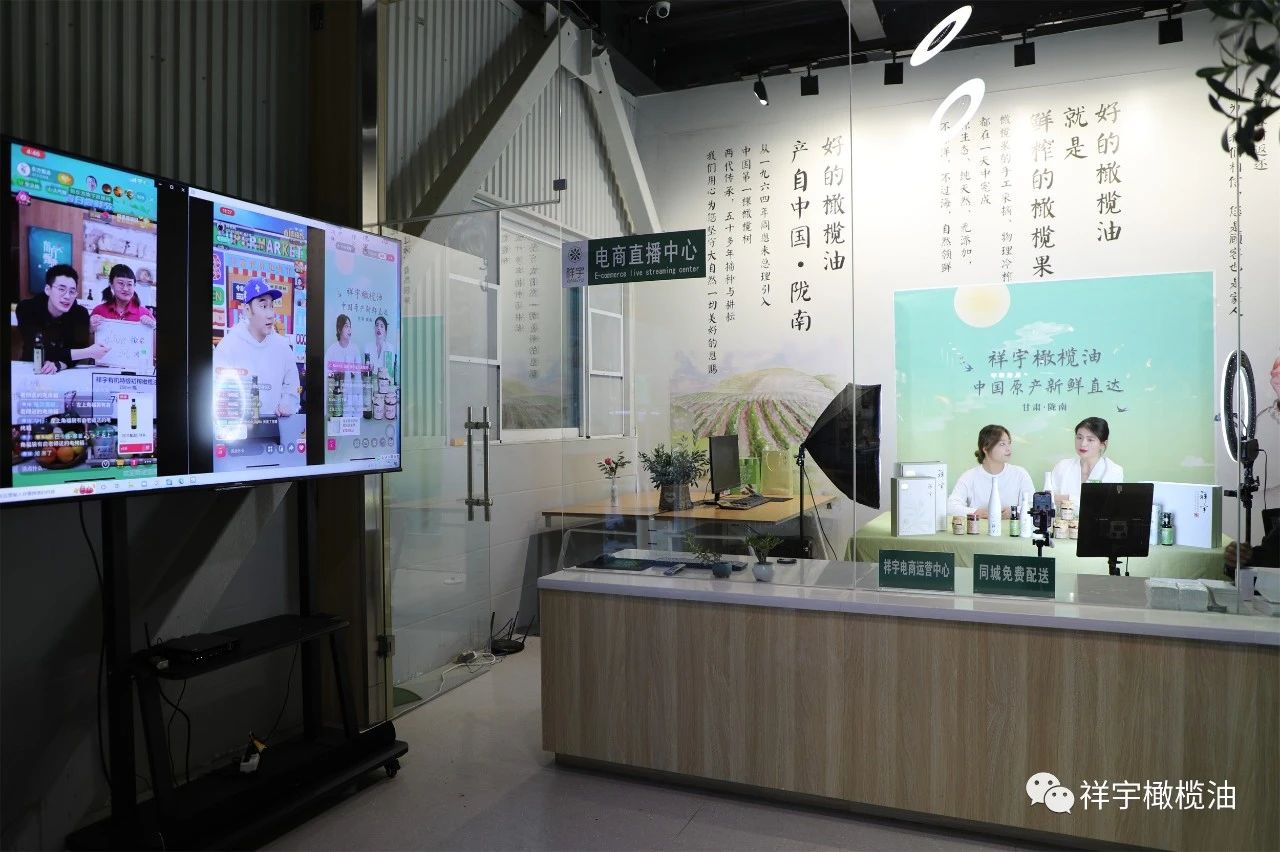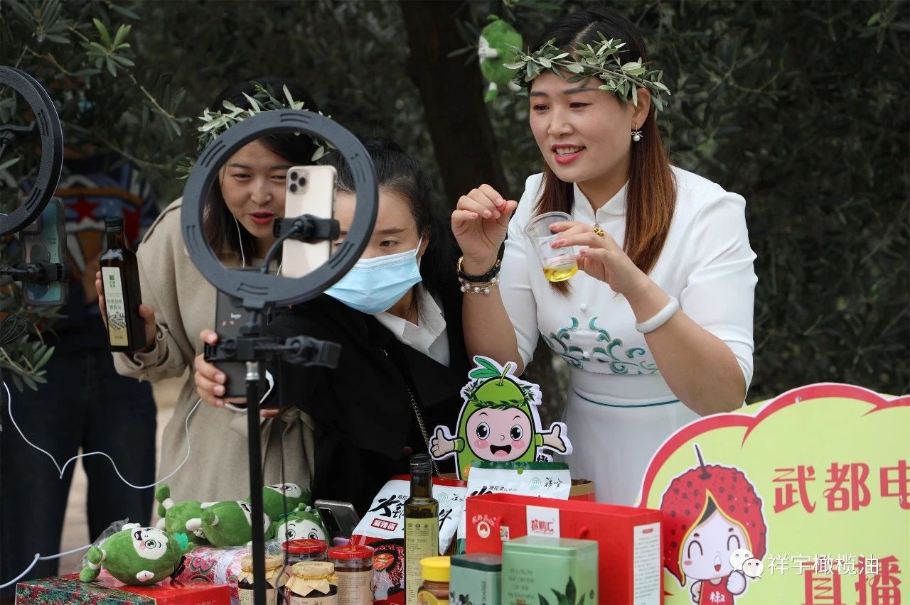 在祥宇生態(tài)產(chǎn)業(yè)園與賀家坪油橄欖基地的直播現(xiàn)場,主播們圍繞橄欖油、橄欖菜,用現(xiàn)場展示、品鑒體驗(yàn)等方式向外界推介宣傳,直播間氣氛異常活躍。
