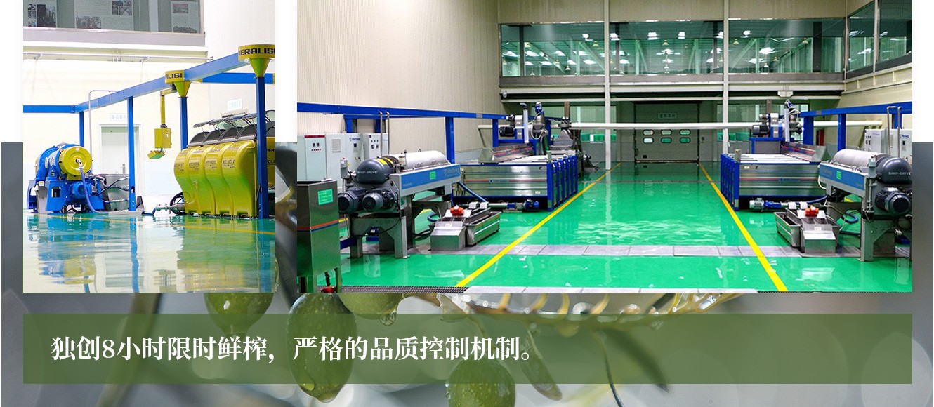 為了生產(chǎn)出頂級(jí)品質(zhì)的橄欖油,公司專門訂制了5萬(wàn)個(gè)食品級(jí)專用果筐,從采摘到壓榨控制在8小時(shí)以內(nèi),先后引進(jìn)了一條意大利貝亞雷斯和兩條德國(guó)福樂偉橄欖油冷榨生產(chǎn)線,建成了亞洲最大的特級(jí)初榨橄欖油生產(chǎn)車間。