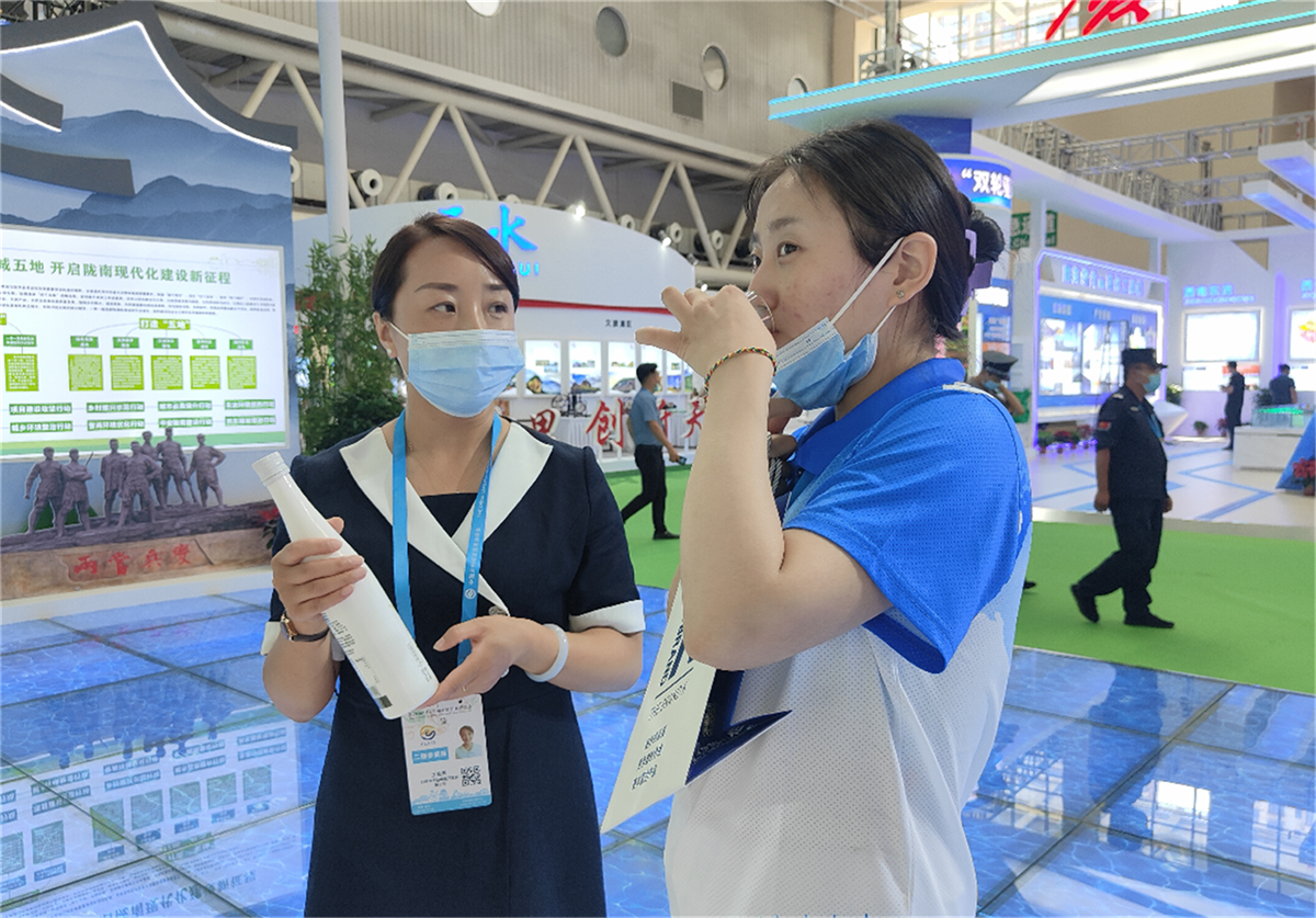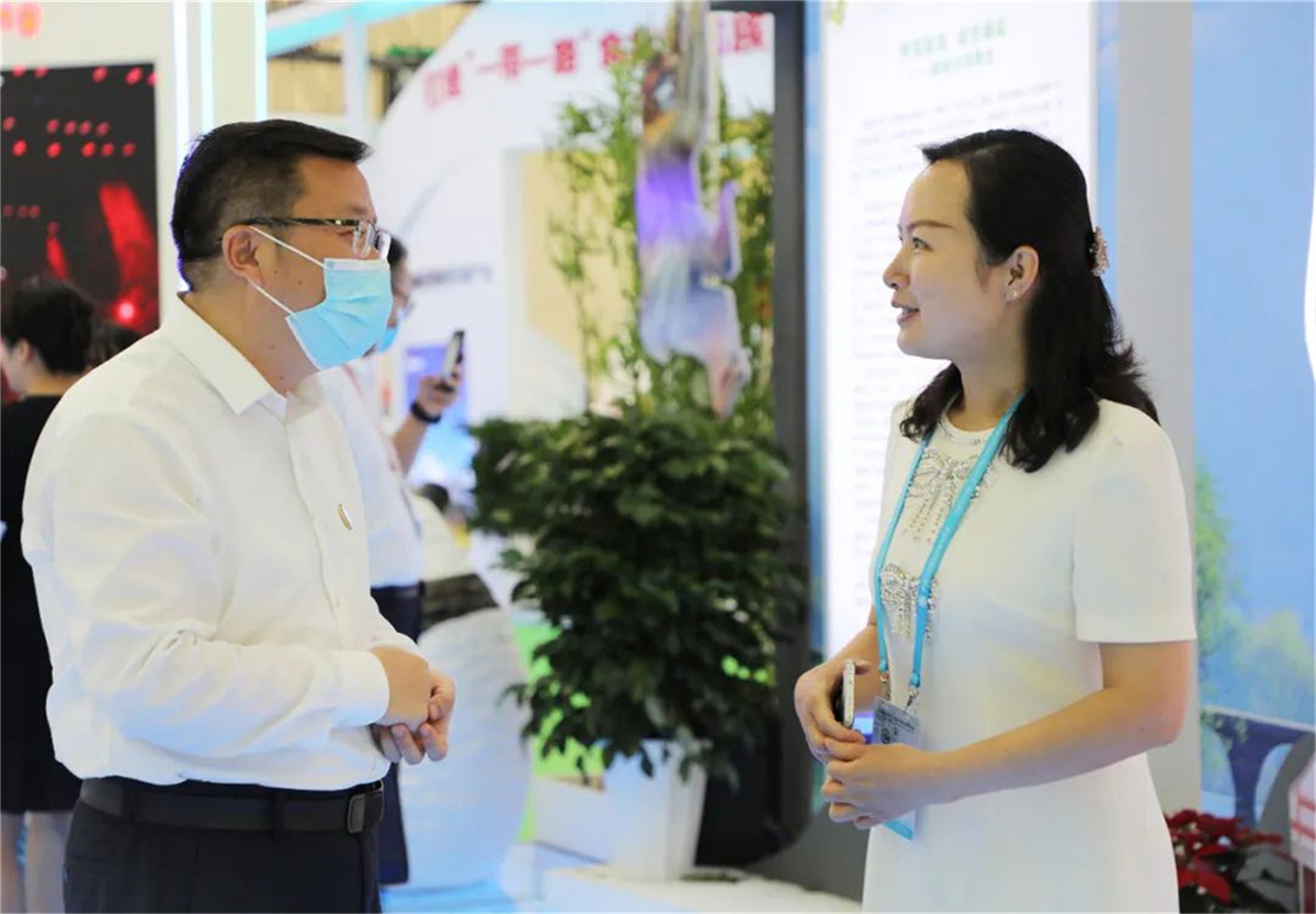 省市領(lǐng)導(dǎo)走進(jìn)隴南館,祥宇公司董事長(zhǎng)劉玉紅邀請(qǐng)各位領(lǐng)導(dǎo)品鑒了祥宇系列產(chǎn)品,